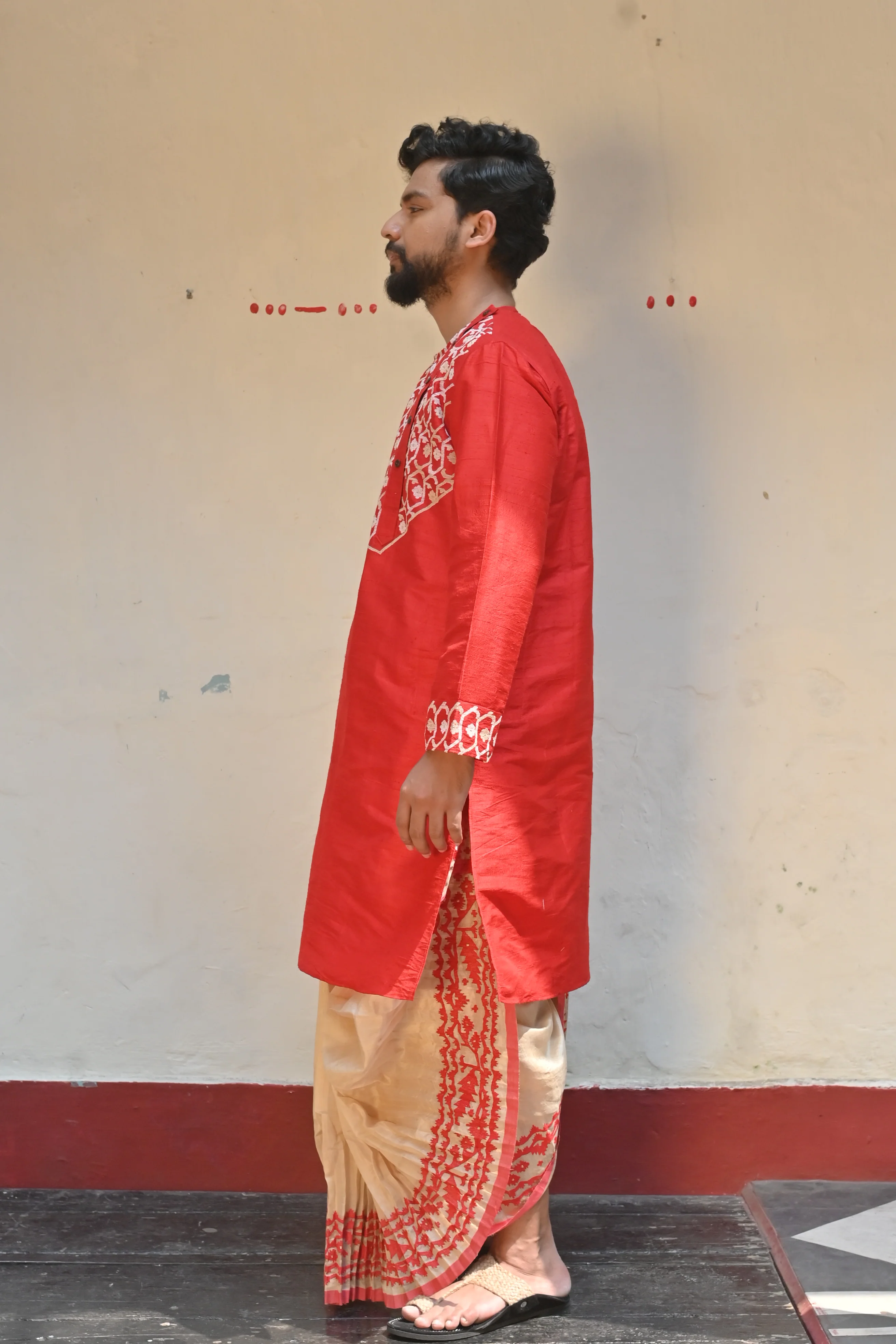 Kurta: Model is wearing RED SONA RUPA KURTA