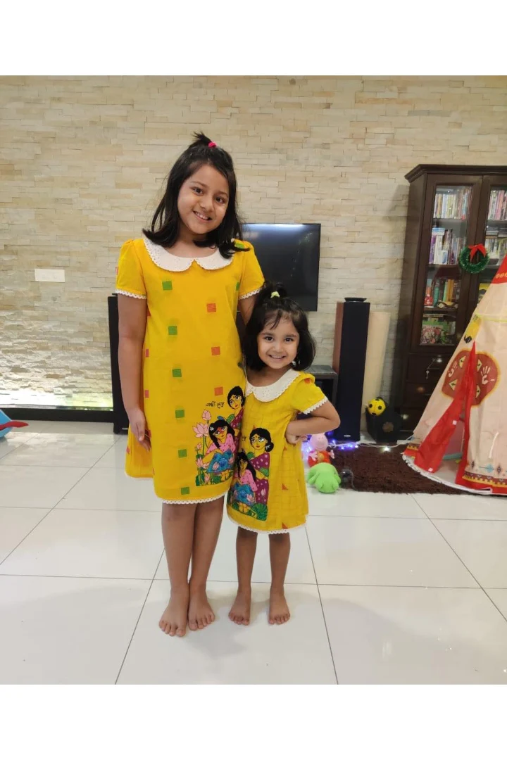 In our next set of clothes, Mandira is a part. The "Lokkhi Meye" is her handwriting. And she is combing our little Neera's hair.