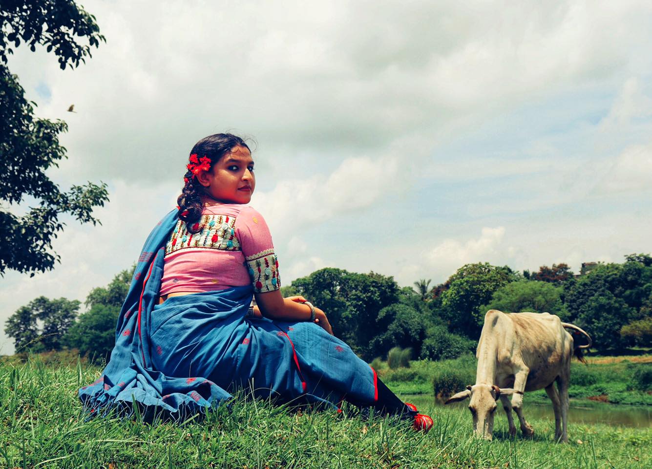 Saree: ?The model is wearing WILD FLOWERS PINK BLOUSE - https://paramacalcutta.com/collections/jamdani-1/products/blue-jamdani